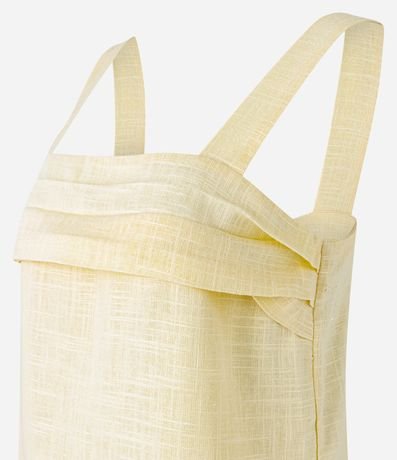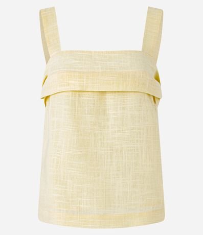 Blusa feminina sem mangas, confeccionada em viscolinho, com decote quadrado e alças médias. Possui padronagem de riscos e pregas no decote.