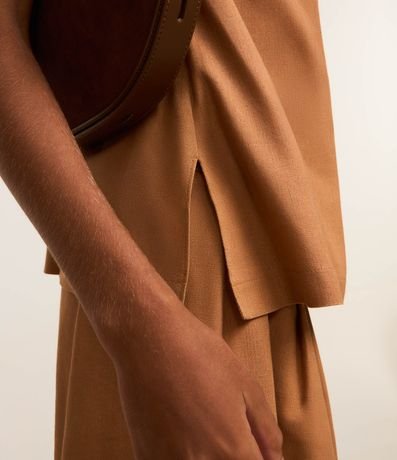 O viscolinho é uma mistura de linho e viscose. O material proporciona toque macio, caimento fluido e um visual sofisticado à peça. Além disso, traz conforto e leveza ao look, perfeito para os dias atuais.