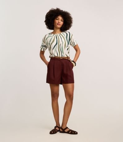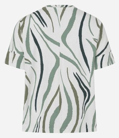 Ref: Blusa de mangas curtas, em viscolycra, com gola redonda e estampa abstrata que remete a animal print de zebra. Este produto possui viscose certificada em sua composição, sendo ambientalmente mais responsável.
