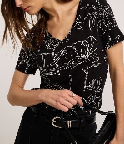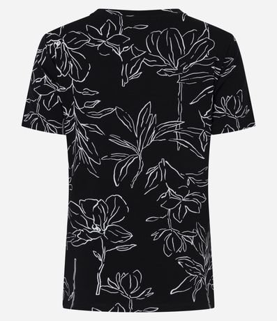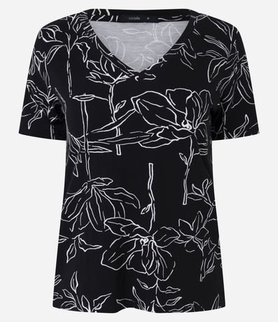 Ref: Blusa de manags curtas, confeccionada em viscolycra, com gola redonda e estampa floral. Este produto possui viscose certificada em sua composição, sendo ambientalmente mais responsável.