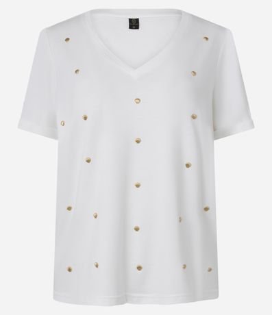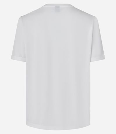 Blusa de mangas curtas, confeccionada em viscolycra com ícones metalizados aplicados. Este produto possui viscose certificada em sua composição, sendo ambientalmente mais responsável.