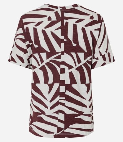 Blusa feminina confeccionada em viscose mais sustentável através de boas práticas ambientais. Possui decote redondo, mangas curtas raglan e estampa de folhagens.