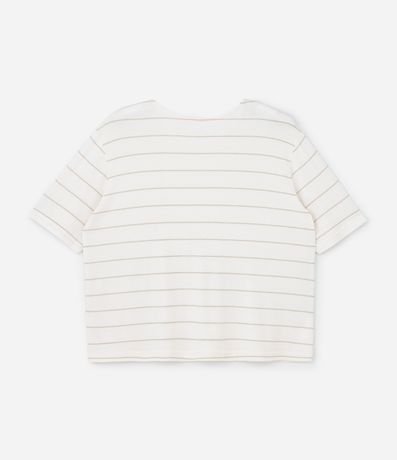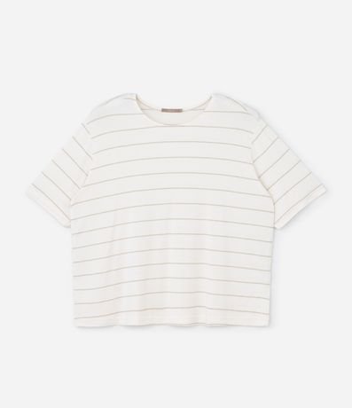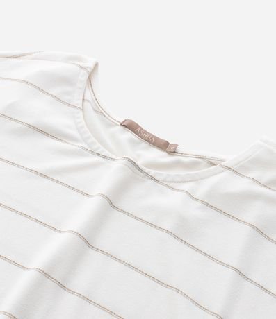 Ref: Camiseta confeccionada em viscolycra composta por viscose certificada. A peça tem gola redonda, mangas curtas e listras horizontais em fio metalizado. Pode haver desencontro de listras.