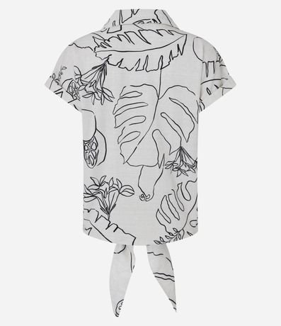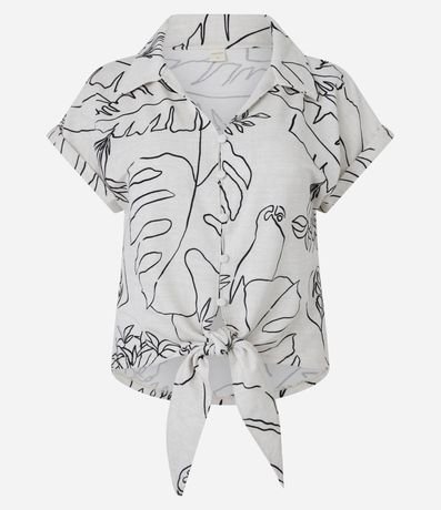 Ref: Blusa de mangas curtas confeccionada em viscose com colarinho na gola, botões frontais para fechamento e amarração na barra. Conta com folhagens estampadas por contorno.