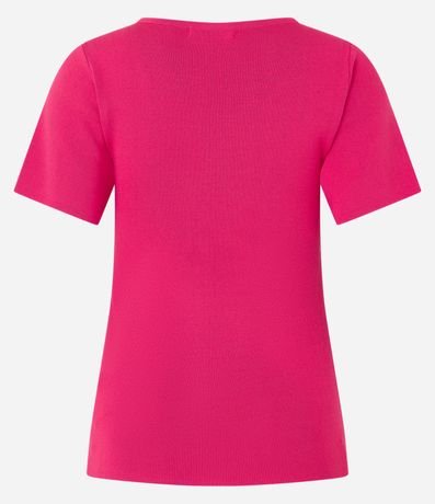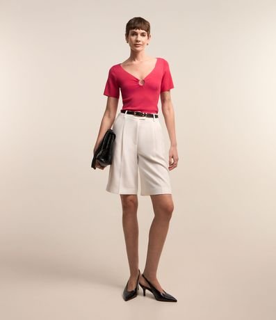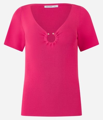 Blusa de mangas curtas confeccionada em viscose com decote V com argola aberta