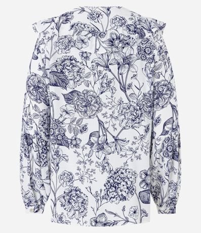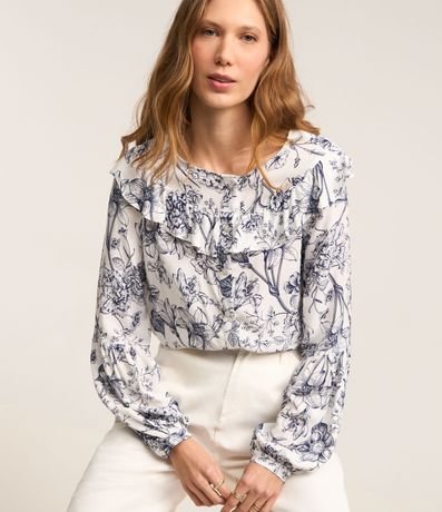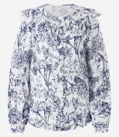 Ref: Blusa feminina, confeccionada em viscose, com babado na gola, mangas longas, punhos ajustados e abotoamento frontal. A peça também conta com estampa floral.