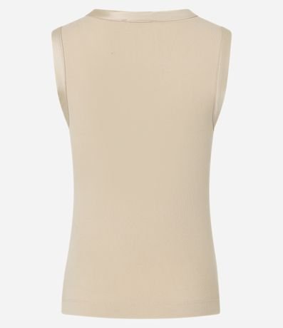 Blusa sem mangas confeccionada em viscose mais sustentável com detalhe em cetim na cava e sem estampa. Peça tem modelagem mais justinha.