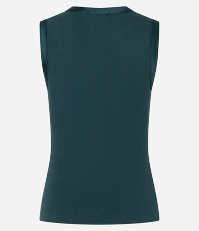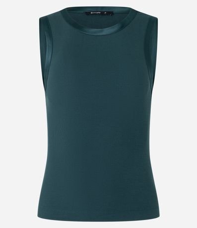 Ref: Blusa sem mangas confeccionada em viscose mais sustentável com detalhe em cetim na cava e sem estampa. Peça tem modelagem mais justinha.