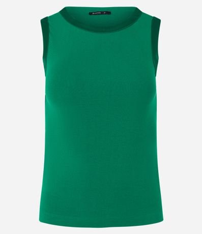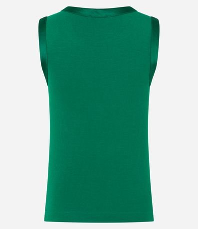 Ref: Blusa sem mangas confeccionada em viscose mais sustentável com detalhe em cetim na cava e sem estampa. Peça tem modelagem mais justinha.