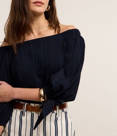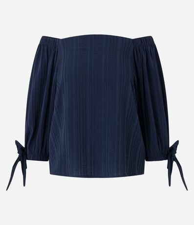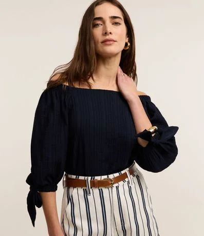 Blusa em Viscose com Decote Quadrado e Manga 3/4 com Amarração nos Punhos