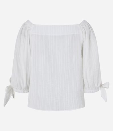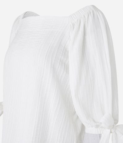 Ref: Blusa feminina confeccionada em viscose, com decote quadrado, manga 3/4 e amarração nos punhos.