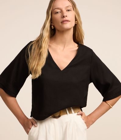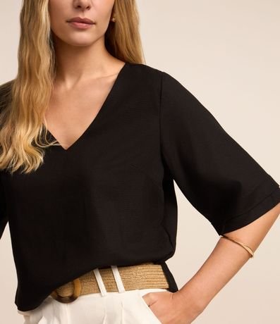 Ref: Blusa de mangas curtas mais amplas com camadas duplas confeccionado em viscose mais sustentável.