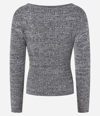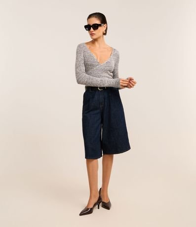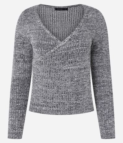 Blusa feminina, confeccionada em viscose, com decote V transpassado e mangas longas.
