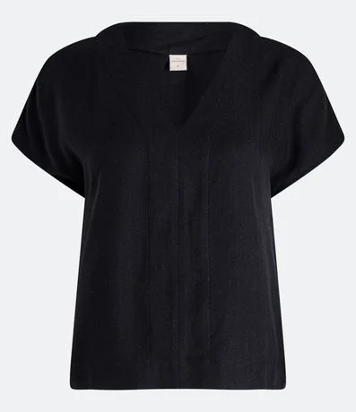Ref: Blusa em viscose com decote V, manga curta e recorte frontal.
