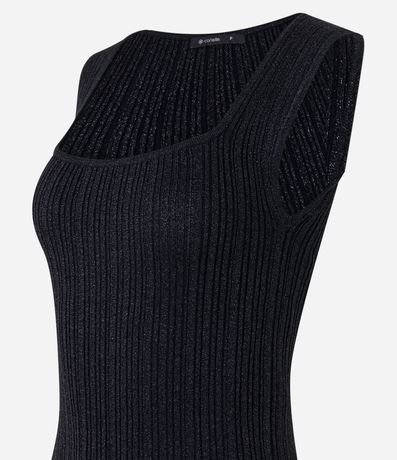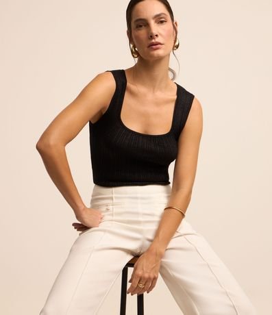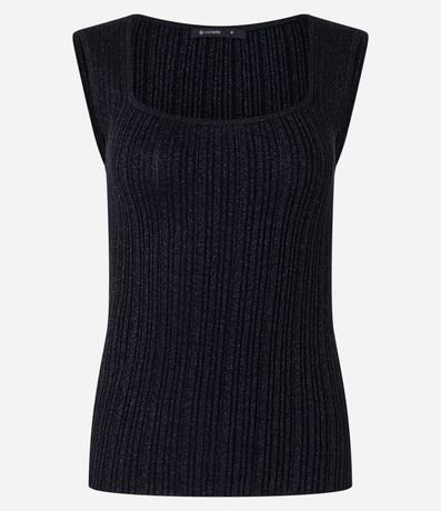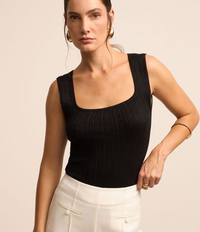 Ref: Blusa feminina confeccionada em viscose mais sustentável, com alça larga, decote quadrado e efeito metalizado.