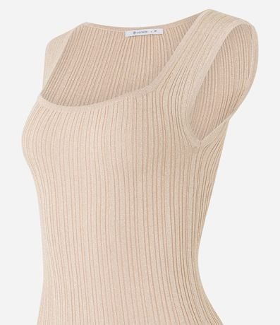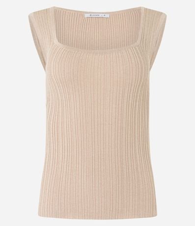 Ref: Blusa feminina confeccionada em viscose mais sustentável, com alça larga, decote quadrado e efeito metalizado.