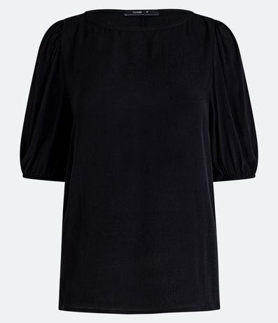 Ref: Blusa em viscose com gola redonda e mangas curtas. Os elásticos nas mangas conferem aquele ar todo especial à esta blusa!