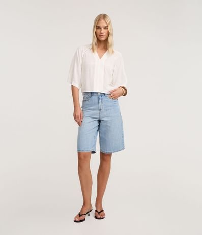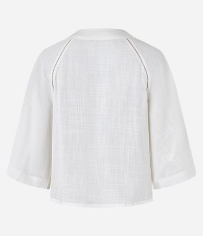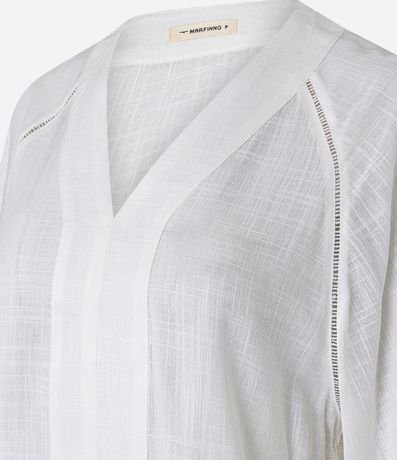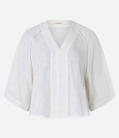 Ref: Blusa mangas curtas amplas, confeccionada em viscose, com decote V e sem estampa. Peça com entremeios nas cavas. Este produto possui viscose certificada em sua composição, sendo ambientalmente mais responsável.