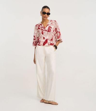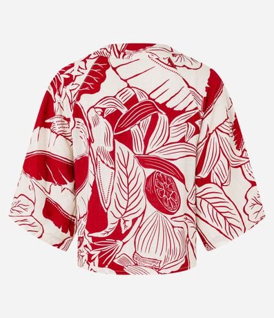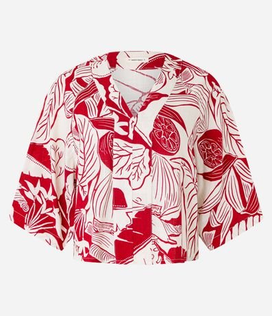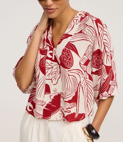 Ref: Blusa mangas curtas amplas, confeccionada em viscose, com decote V e estampa de folhagens com limões. Peça com entremeios nas cavas. Este produto possui viscose certificada em sua composição, sendo ambientalmente mais responsável.