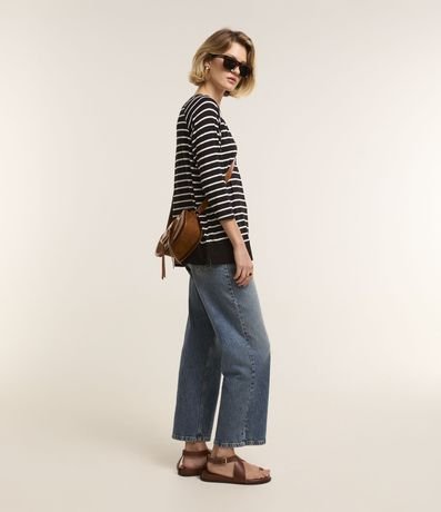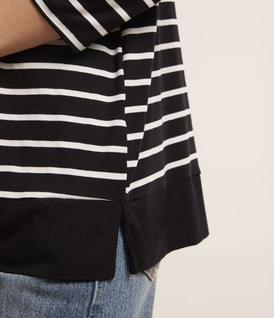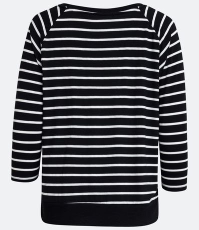 Blusa em viscose com decote redondo, mangas longas e estampa listrada.