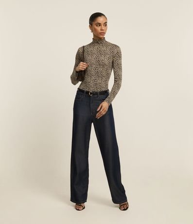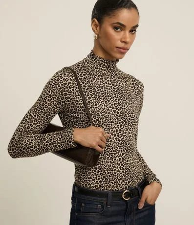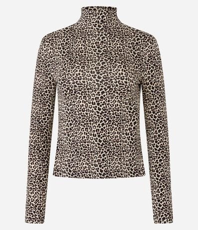 Blusa em Viscose com Gola Alta e Estampa Onça