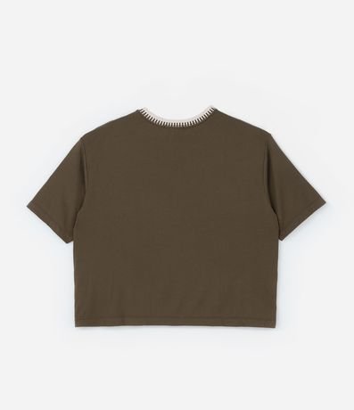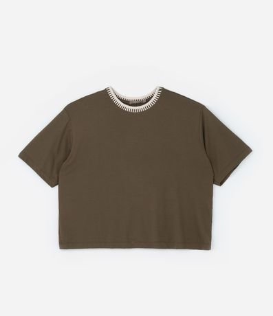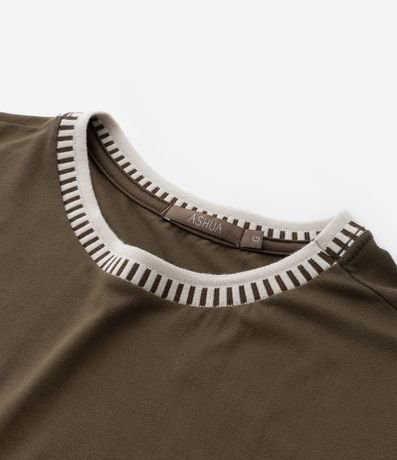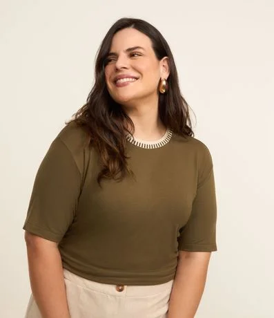 Ref: Camiseta de viscose mais sustentável, sem estampa. A peça tem mangas curtas e gola redonda de tricô.
