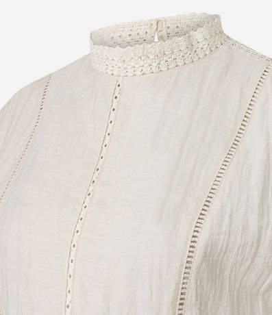 Blusa em Viscose com Gola Padre e Renda na Barra