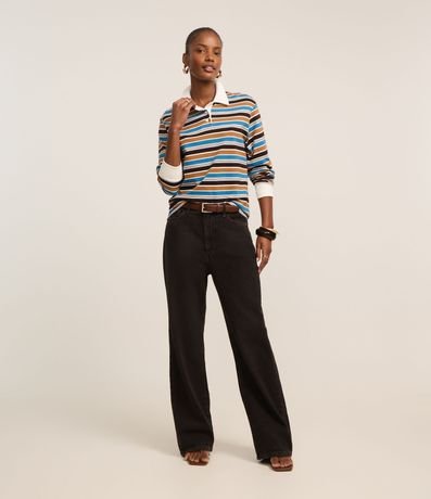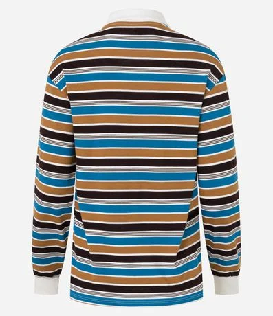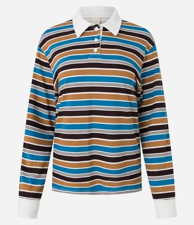 Blusa de mangas longas, confeccionada em algodão, com gola polo. Peça tem ribana no colarinho da gola e nos punhos, além disso, conta também com listras horizontais com espessuras e cores variadas. Este produto possui viscose certificada em sua composição, sendo ambientalmente mais responsável.