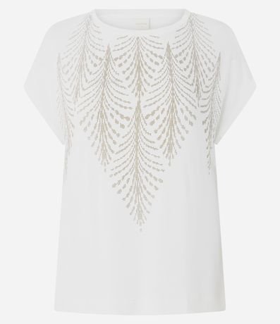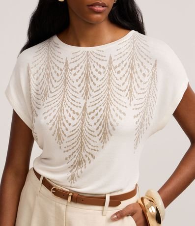 Ref: Blusa slim com manags curtas sem cavas, em viscose, com gola redonda, e glitter aplicado que formam padrão. Este produto possui viscose certificada em sua composição, sendo ambientalmente mais responsável.