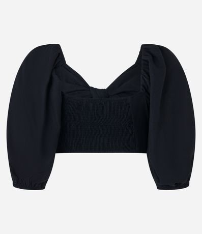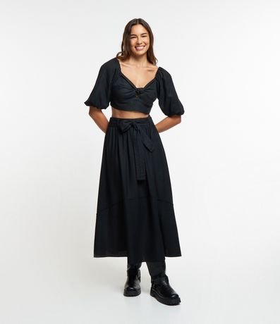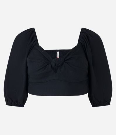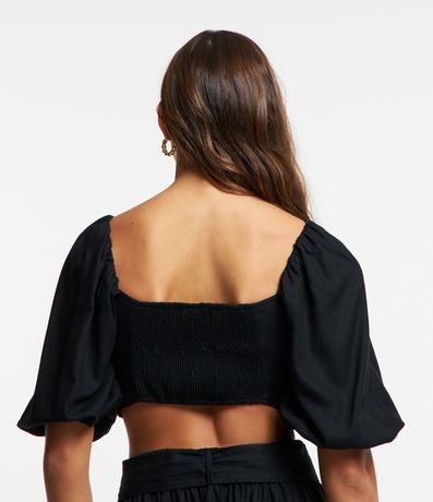 Ref: Blusa manga 3/4, confeccionada em viscose e linho, decote v com nózinho no busto e lastex nas costas.