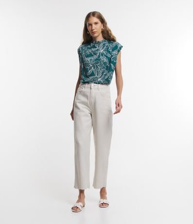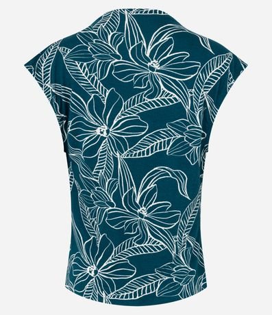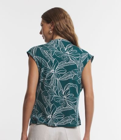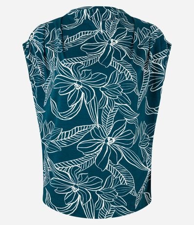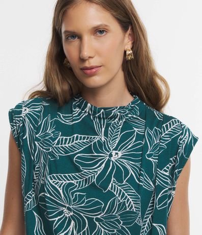 Ref: Blusa em viscose, com golinha, pregas nos ombros e estampa folhagem contrastante.