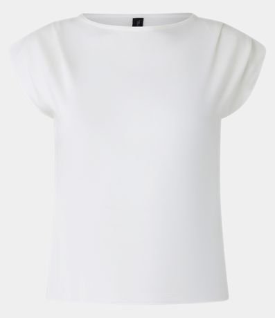 Ref: Blusa feminina confeccionada em viscose, com gola redonda e sem mangas. Possui corte alongado nas cavas com pregas nos ombros.