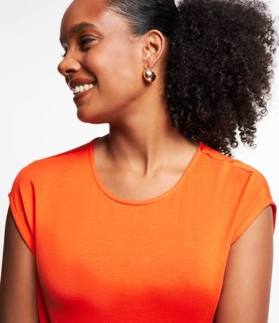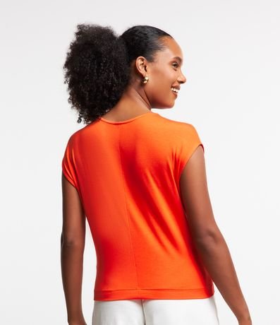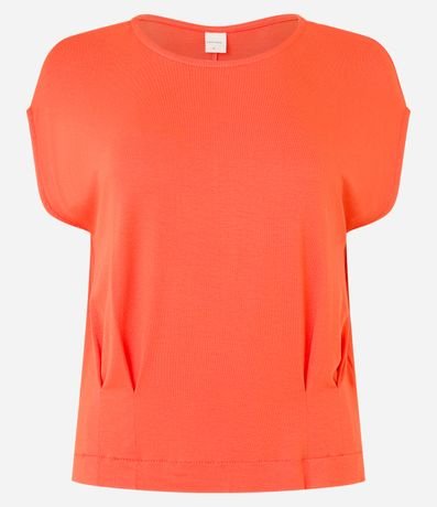 Ref: Blusa feminina confeccionada em malha de viscose mais responsável, com gola redonda e sem mangas. Sem estampa, possui detalhe de pregas na barra.