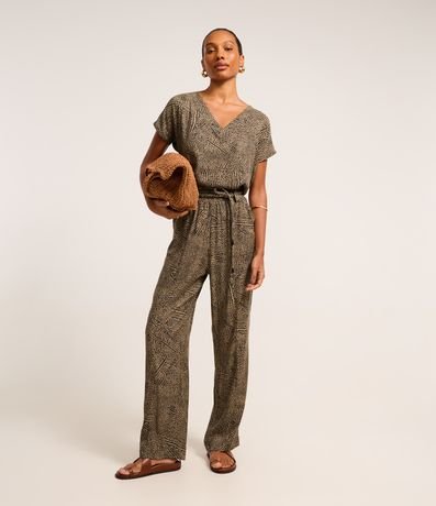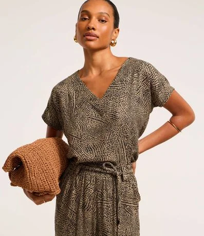Blusa em Viscose Twill com com Gola V e Estampa Abstrata
