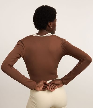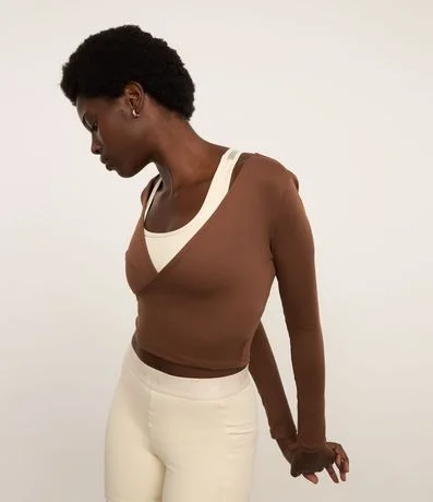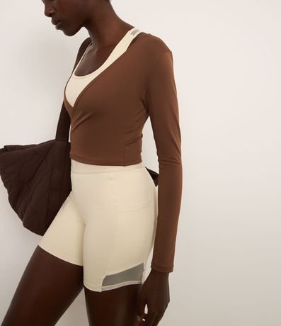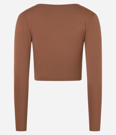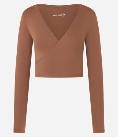 Ref: Blusa manga longa esportiva confeccionada em microfibra. A peça é lisa, ajustada e tem decote cruzado em V.