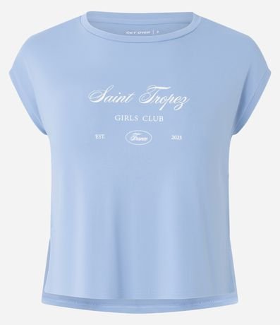 Ref: Blusa esportiva confeccionada em microfibra leve. A peça tem manguinha curta com a barra dobrada e estampa lettering "Saint Tropez".