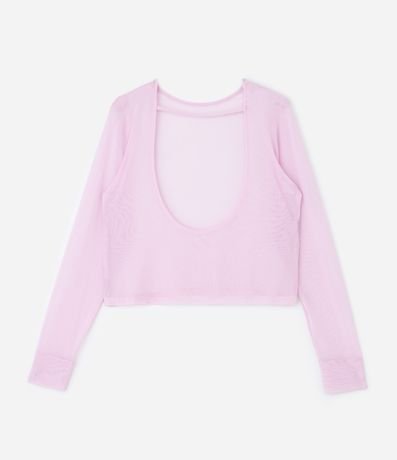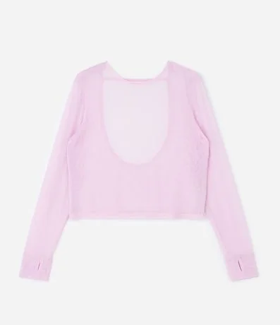 Ref: Blusa esportiva plus size, confeccionada em tule, com transparência. Sem estampa, possui diferencial de decote profundo nas costas e encaixe para o dedo no punho.