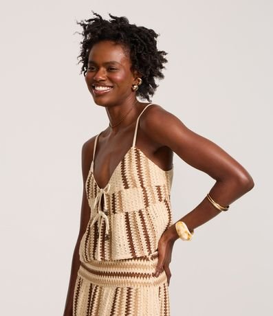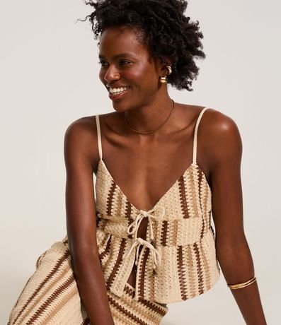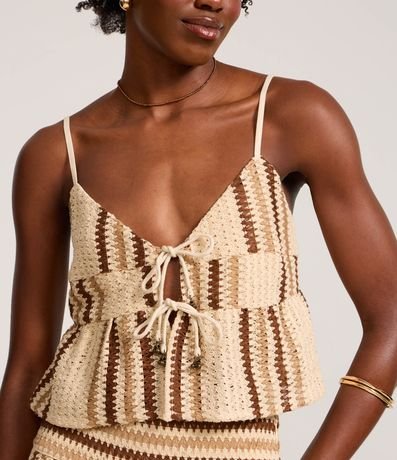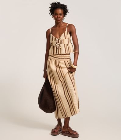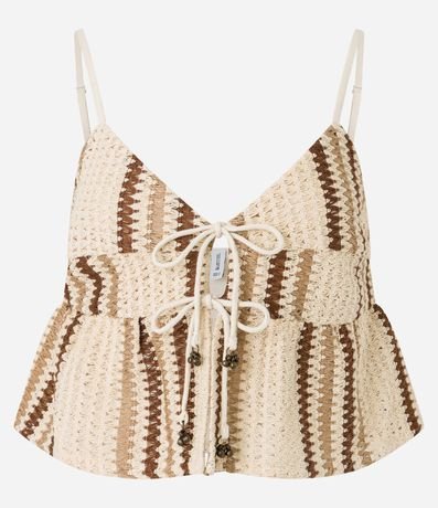 Ref: Blusa de alcinha confeccionada em algodão bci mais sustentável, amarração no busto e listrinhas.