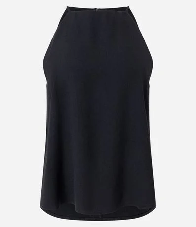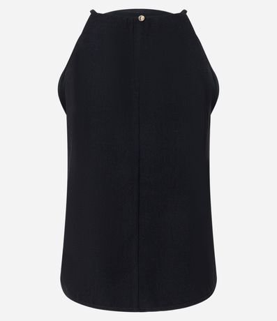 Ref: Blusa feminina confeccionada em crepe, sem mangas, com gola halterneck e acabamento liso, apresentando visual minimalista e elegante, ideal para composições sofisticadas e modernas no dia a dia ou à noite.