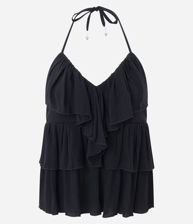 Blusa Frente Única com Babados e Amarração