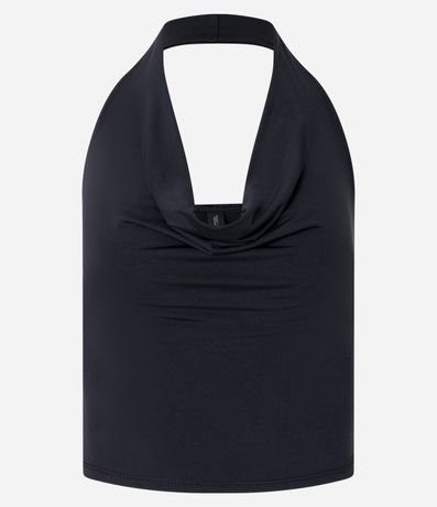 Blusa frente única, com elastano, alça larga com decote degagê e sem estampa.