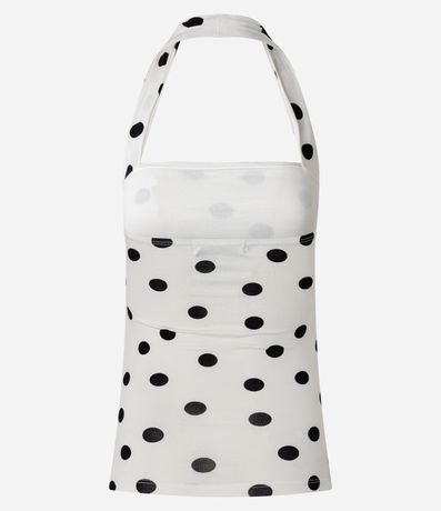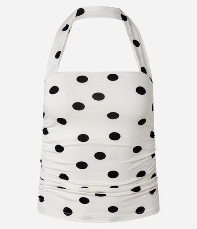 Blusa Frente Única com Detalhe Franzido e Estampa Poá