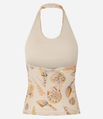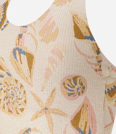 Ref: Blusa feminina frente única confeccionada em viscose mais sustentável através de boas práticas ambientais, com fio metalizado, garantindo brilho e sofisticação. Possui estampa fundo do mar em fullprint, modelagem curta e sem mangas. Ideal para compor looks modernos e elegantes com toque fashion e sustentável.