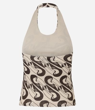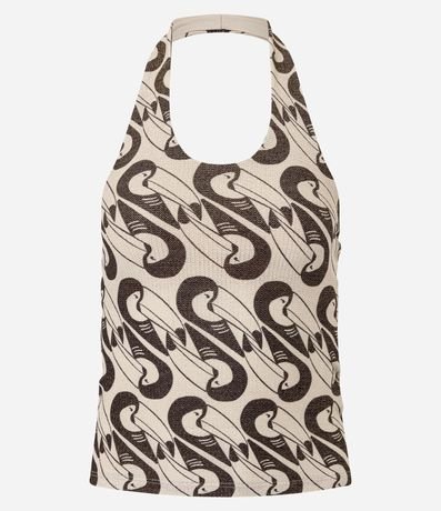 Blusa Frente Única com Fio Metalizado e Estampa Gravataria