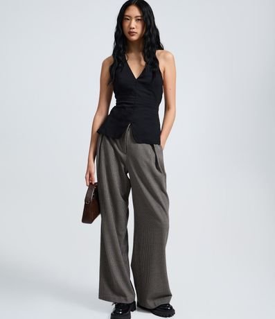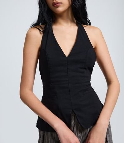 Ref: Blusa frente única em bengaline com decote profundo e modelagem ajustada na parte superior, trazendo um visual elegante e moderno. Possui barra levemente ampliada e bolsos laterais decorativos, ideal para compor produções sofisticadas. Peça confeccionada em viscose certificada, contribuindo para um processo mais sustentável.