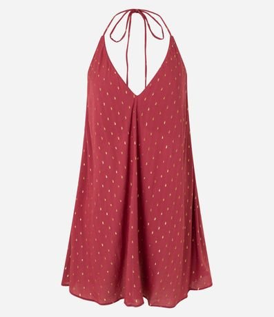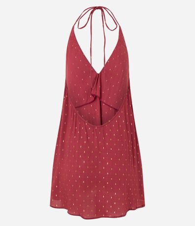 Ref: Blusa alongada de cetim confeccionado com matéria prima (viscose) mais sustentável. A peça frente única tem amarração no pescoço, decote profundo nas costas, decote V frontal e aplicação de brilhinhos na superfície.