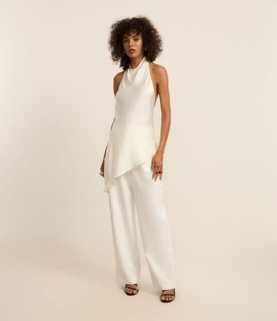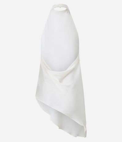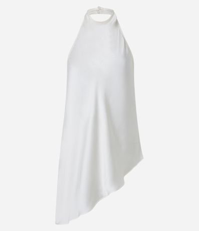 Ref: Blusa frente única, confeccionada em cetim, com gola degagê e barra assimétrica.