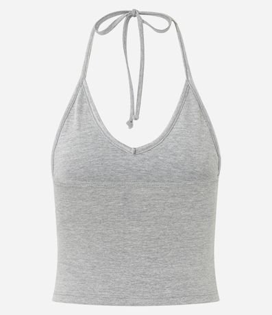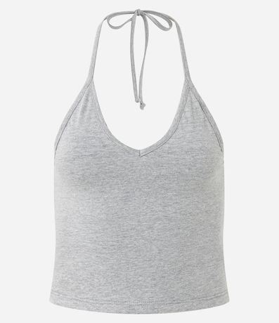 Ref: Blusa básica de frente única, confeccionada em cotton, com decote V, amarração no pescoço e fundo mesclado. Este produto possui algodão certificado em sua composição, sendo ambientalmente mais responsável.