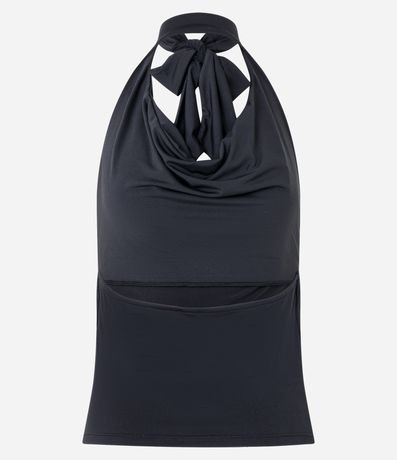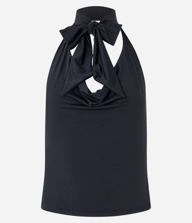 Blusa frente única com amarração no pescoço, decote degagê com costas abertas e confeccionada em jersey.