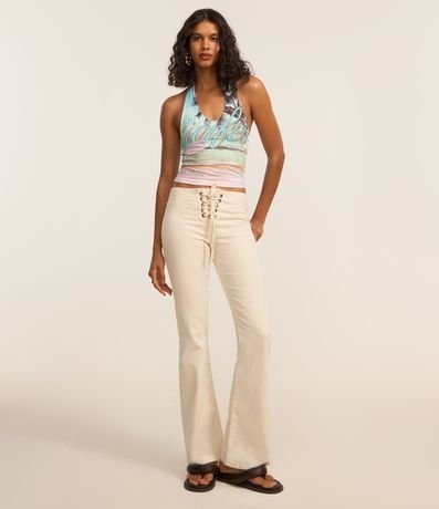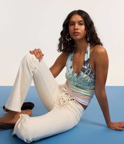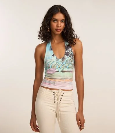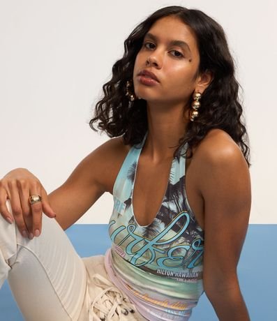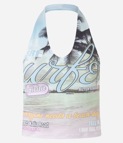 Blusa Frente Única em Microfibra com Estampa Praia Aloha